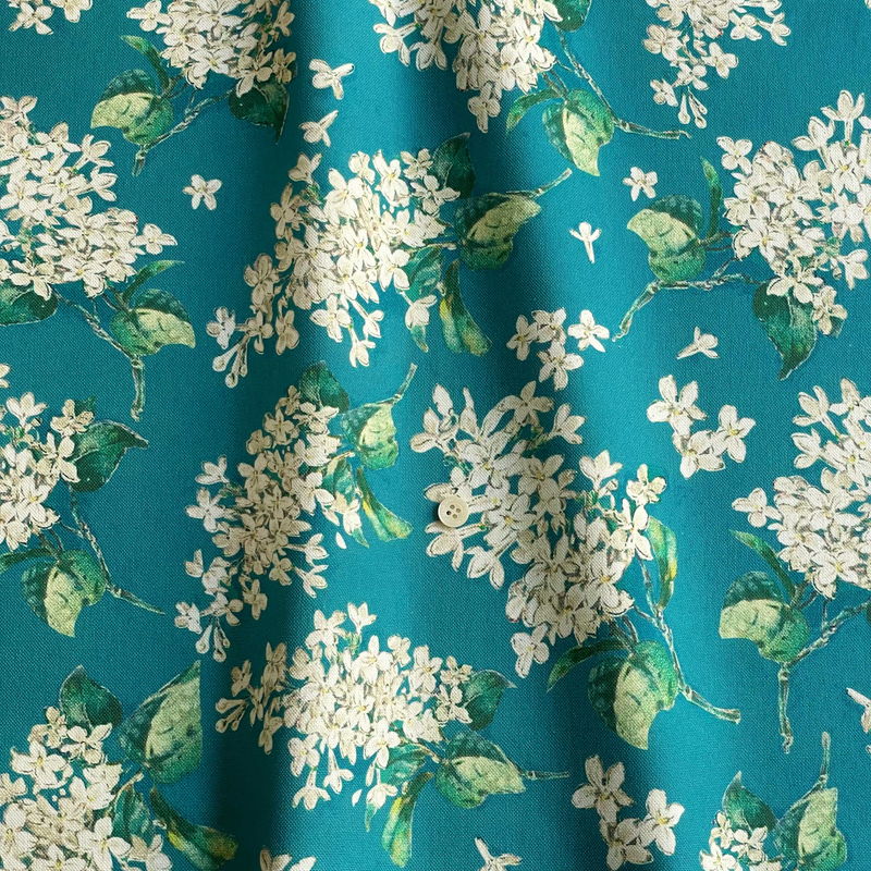 LIBERTYリバティプリント 国産11号帆布(キャンバス)生地<Archive Lilac>(アーカイブライラック)【ターコイズ】3635189-15DC