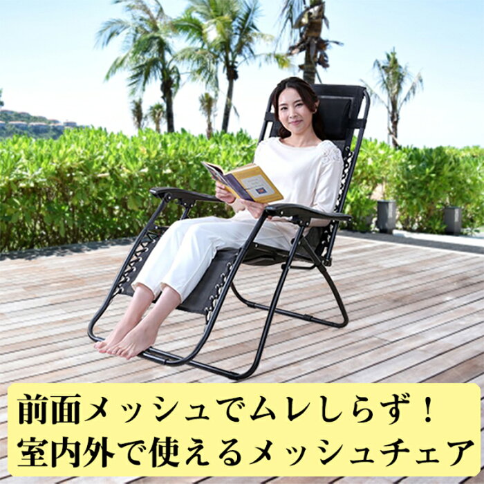 折りたためる!リクライニングメッシュチェア Ho-90493■商品詳細折り畳める!リクライニングメッシュチェア 枕つき◆好きな角度にリクライニングOK◆シートの生地には丈夫で通気性に優れたポリエステル製メッシュ生地を採用。