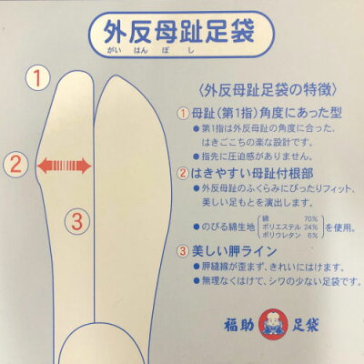 その他商品説明 老舗足袋メーカー「福助謹製」の外反母趾用の足袋です。