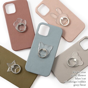 ■ほぼのシェルケース型スマホカバーカラーブルーピンクベージュピンクカーキグレーデコレーション名スマホリング注意※製品の色・仕様が変更になる場合があります。
