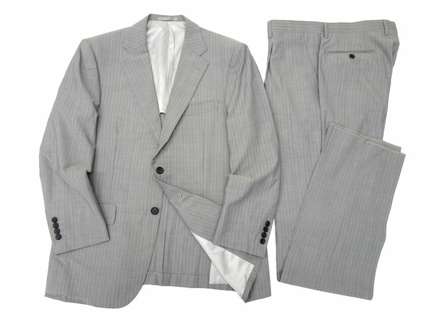 GIVERDYE best selection ジバルディ 日本製 イタリア製生地REDA社ウール100% ストライプ柄 2B 1タック シングルスーツ ジャケット スラックスパンツ 895A5911 グレー BB5 ▲050▼20120r05
